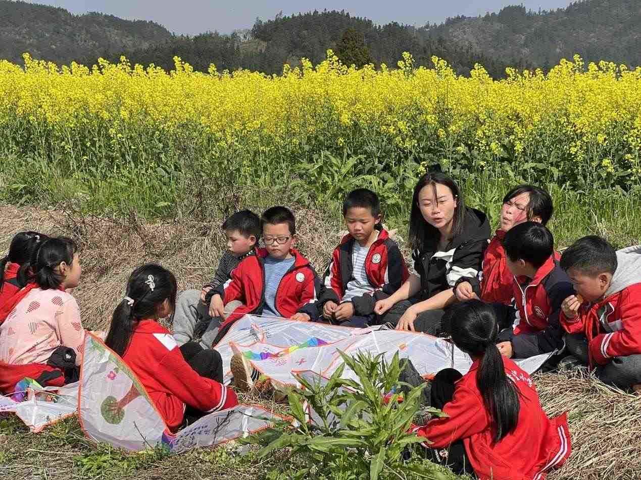 李柏霖不愿意讓孩子們覺得這樣的情緒是生活的全部。她把課堂搬到野外,在“搖搖花”開的時候帶孩子們去看“搖搖花”,油菜花開時去看油菜花?;ㄒ彩窃姡亦l(xiāng)也是詩——若非如此,老師為什么走了又回呢?