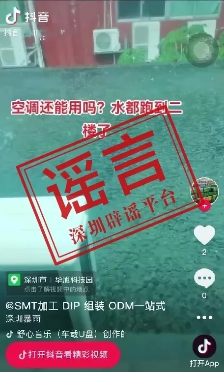央視網(wǎng)消息:據(jù)“深圳網(wǎng)絡(luò)辟謠”微信公眾號(hào)消息,4月21日上午,有網(wǎng)帖稱深圳“寶安區(qū)華旭科技園由于雨水過(guò)大,二樓存在大量積水”,短視頻顯示的地點(diǎn)是“寶安區(qū)華旭科技園”。據(jù)向應(yīng)急部門核查了解,信息不實(shí),該科技園并沒(méi)有發(fā)生網(wǎng)帖所稱大量積水的情況。