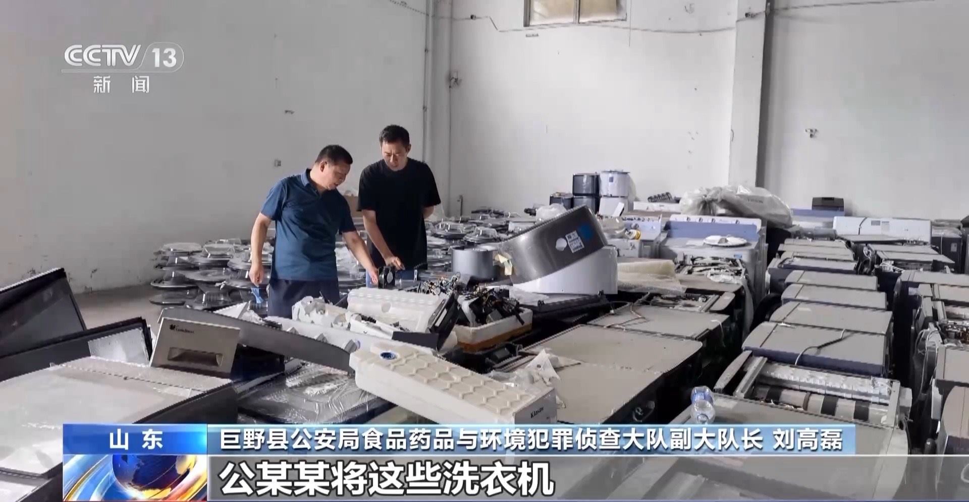 巨野縣公安局食品藥品與環(huán)境犯罪偵查大隊副大隊長 劉高磊:當(dāng)時品牌方聽到這個消息之后很驚訝,因為拆解公司已經(jīng)給他們出具了完成拆解任務(wù)的承諾書,為什么還有這些洗衣機出現(xiàn)?