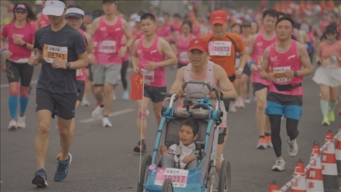 10年來,這位父親推著兒子在大江南北、長城內(nèi)外,不竭地奔跑了70場馬拉松。