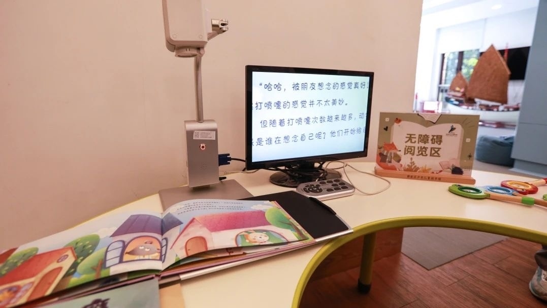 經(jīng)整改,圖書館各在一樓和三樓設(shè)有無(wú)障礙閱覽區(qū),增配大字版圖書和手指點(diǎn)讀發(fā)聲書,配置盲人專用電腦助視器、盲文點(diǎn)字顯示器、盲文有聲讀書機(jī)和放大鏡。打造有聲閱讀文化體驗(yàn)陣地“數(shù)智圖書館”,視障讀者只需使用數(shù)智耳機(jī)觸碰感應(yīng)相應(yīng)書卡和書籍,就能輕松接觸到千本好書的精華內(nèi)容,方便快捷地享受與普通人同等的閱讀權(quán)益。圖書館還設(shè)有無(wú)障礙通道、無(wú)障礙衛(wèi)生間、無(wú)障礙電梯,為視障、腿部殘疾等特殊人群提供安全便利全方位的出入保障。