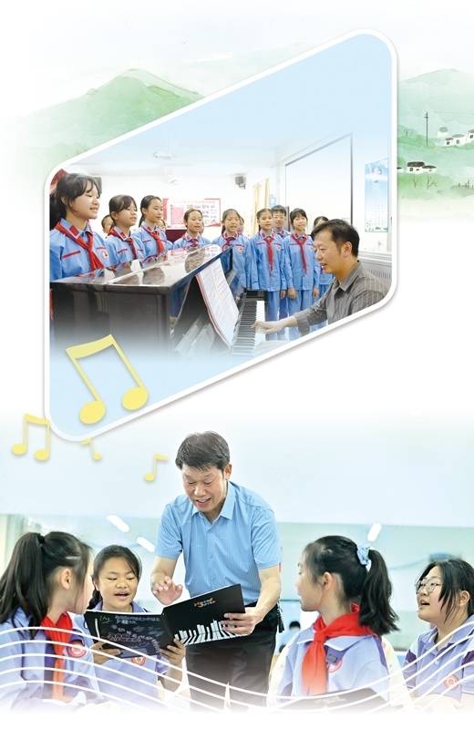 上圖:江西興國縣蕭華紅軍小學(xué)小紅星合唱團正在練習(xí)。李 玲攝 下圖:湖北宣恩縣博雅實驗學(xué)校土家娃合唱團負責(zé)人廖光新在指導(dǎo)學(xué)生。陳緒開攝