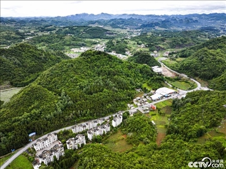 貴州省黔西市綠化白族彝族鄉(xiāng)馬坎村村莊,黑瓦白墻,蜿蜒的“四好農(nóng)村路”村口經(jīng)過(guò),周?chē)采w著綠色的山野,美麗如畫(huà)。