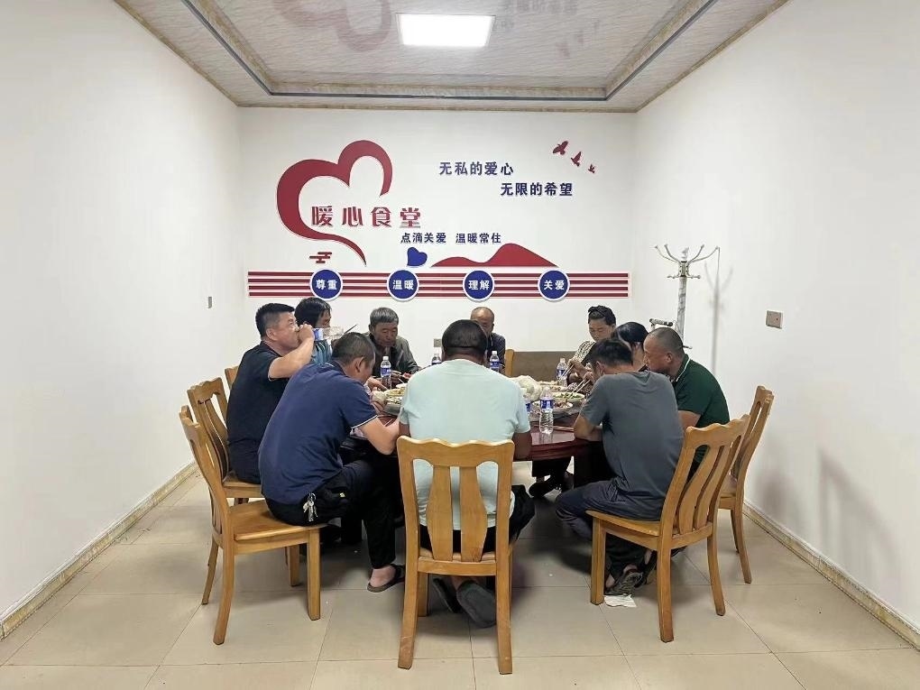 在山東德州陵城區(qū)一家村級“幸福院”,工作了一天的農(nóng)機手們正在吃晚飯。(受訪者供圖)