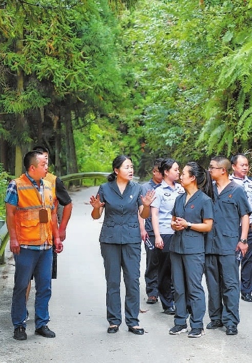 近日,重慶市黔江區(qū)人民法院干警前往黔江區(qū)馬喇國有林場管護(hù)站、護(hù)林點,對森林防火卡口和護(hù)林站點人員值守、消防預(yù)警機(jī)制等開展走訪調(diào)查,深入林區(qū)為農(nóng)戶宣講森林防火、森林生態(tài)環(huán)境保護(hù)等法律知識,營造全民共護(hù)森林的良好氛圍,筑牢武陵山區(qū)生態(tài)屏障。圖為干警在林區(qū)走訪調(diào)查。(本報記者 劉洋 本報通訊員 楊非 攝)