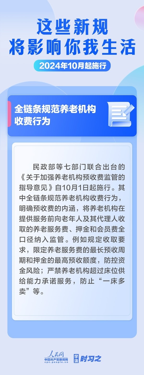 增加軍人撫恤優(yōu)待措施;全鏈條規(guī)范養(yǎng)老機構收費行為;電動自行車用鋰電池實施強制性產(chǎn)品認證……10月起,這些新規(guī)施行,將影響你我生活。