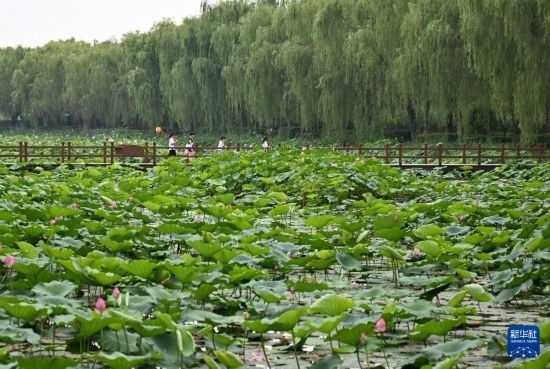 近日,河北雄安新區(qū)白洋淀荷花大觀園內(nèi)的荷花競相開放,吸引眾多游人前來觀光游覽。