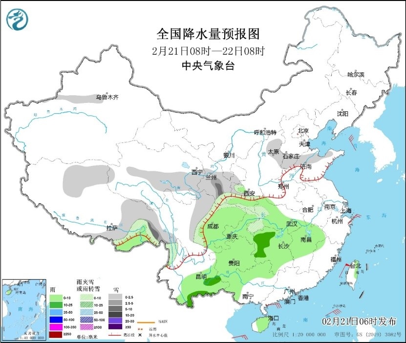 人民網(wǎng)北京2月21日電 (溫璐、高清揚(yáng))據(jù)中央氣象臺(tái)消息,昨日,降雨主要出現(xiàn)在江南地區(qū),其中湖南中南部、江西、安徽南部、浙江、福建西部和北部、廣西北部、臺(tái)灣島北部等地有中到大雨,局地暴雨。預(yù)計(jì)21日至25日,江南、華南、江漢及西南地區(qū)等地仍多陰雨天氣,北方大部地區(qū)天氣晴好,西北地區(qū)東南部、華北南部、東北地區(qū)東北部等地有弱降雪。