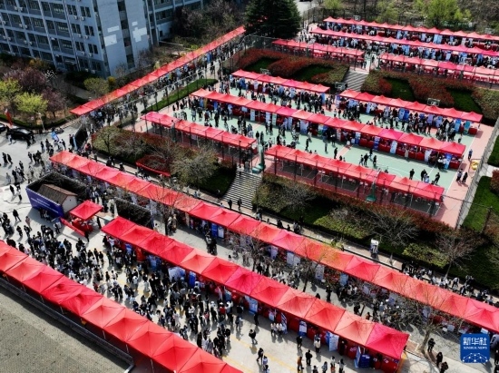 這是4月11日在四川省西南醫(yī)科大學拍攝的2025屆畢業(yè)生春季雙選會現(xiàn)場(無人機照片)。