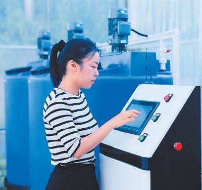 王園園在大棚操作物聯(lián)網(wǎng)系統(tǒng)。