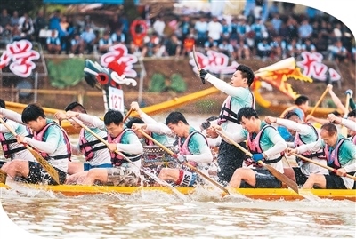 水上龍舟競渡,賽場外民俗活動同樣精彩,燈謎競猜、特色美食品味等活動構(gòu)成了一幅生動的端午民俗畫卷。