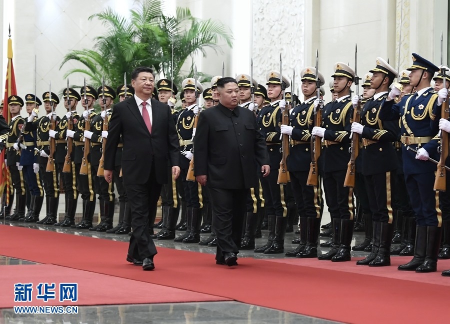 1月8日,中共中央總書記、國家主席習(xí)近平同當日抵京的朝鮮勞動黨委員長、國務(wù)委員會委員長金正恩舉行會談。會談前,習(xí)近平在人民大會堂北大廳為金正恩舉行歡迎儀式。 新華社記者 李學(xué)仁 攝