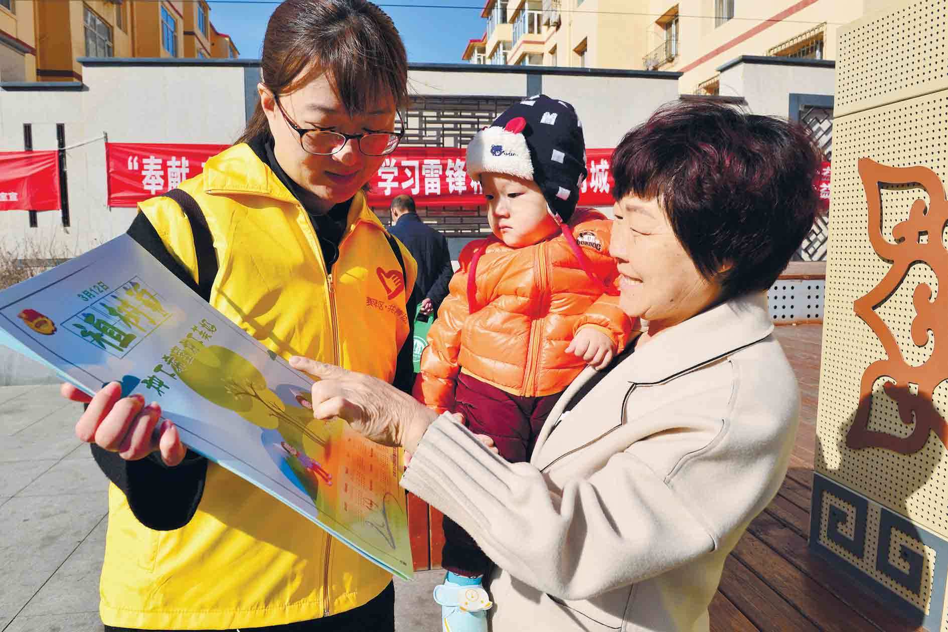 3月12日,志愿者在呼和浩特市賽罕區(qū)金地文化廣場(chǎng)上為市民發(fā)放宣傳資料。當(dāng)日,賽罕區(qū)綠化委員會(huì)辦公室舉辦了“3·12植樹(shù)節(jié)”宣傳活動(dòng)。據(jù)悉,2018年賽罕區(qū)完成植樹(shù)958萬(wàn)株(叢),人均公園綠地面積19.1平方米,建成區(qū)綠化覆蓋率42.3%。(內(nèi)蒙古日?qǐng)?bào)社融媒體記者 安寅東)