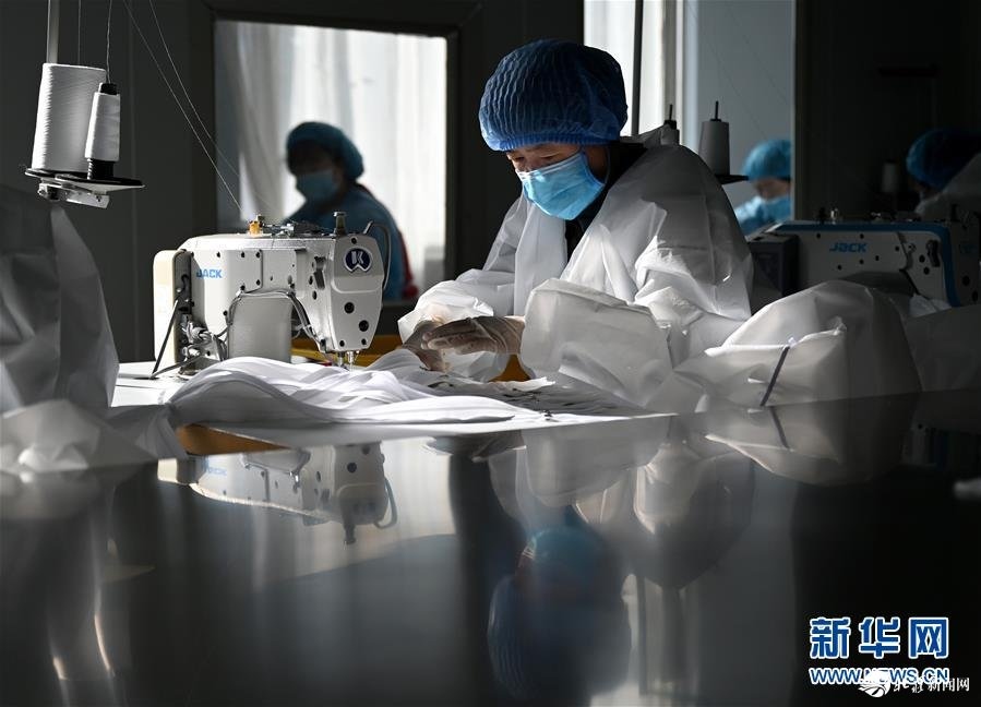 呼和浩特欣龍康醫(yī)療器械有限責(zé)任公司是一家員工不足20人的小型企業(yè),也是內(nèi)蒙古為數(shù)不多能生產(chǎn)醫(yī)用防護(hù)服的企業(yè)之一。新冠肺炎疫情發(fā)生后,公司從1月24日(除夕)就組織員工復(fù)產(chǎn),24小時(shí)連續(xù)作業(yè),生產(chǎn)無菌醫(yī)用防護(hù)服和隔離服。目前,該企業(yè)每天生產(chǎn)防護(hù)服約400套,全部用于內(nèi)蒙古防治新冠肺炎的一線醫(yī)護(hù)人員。 新華社記者 徐欽 攝