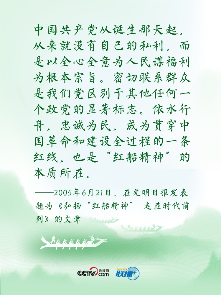 過端午,賽龍舟。龍舟這項傳統(tǒng)運動,象征著中華民族的拼搏、堅韌、團結(jié),承載著深植在民族基因里的愛國主義之魂?!爸邸弊肿怨乓詠碓谥腥A傳統(tǒng)文化中都有著深刻寓意?!耙浪兄?,忠誠為民”“逆水行舟,不進則退”......習近平總書記曾多次以“舟”為喻闡釋思想,寄情言志。央視網(wǎng)《聯(lián)播+》特進行梳理,讓我們沿著總書記指引的方向,團結(jié)奮進,砥礪前行?! ?/p>