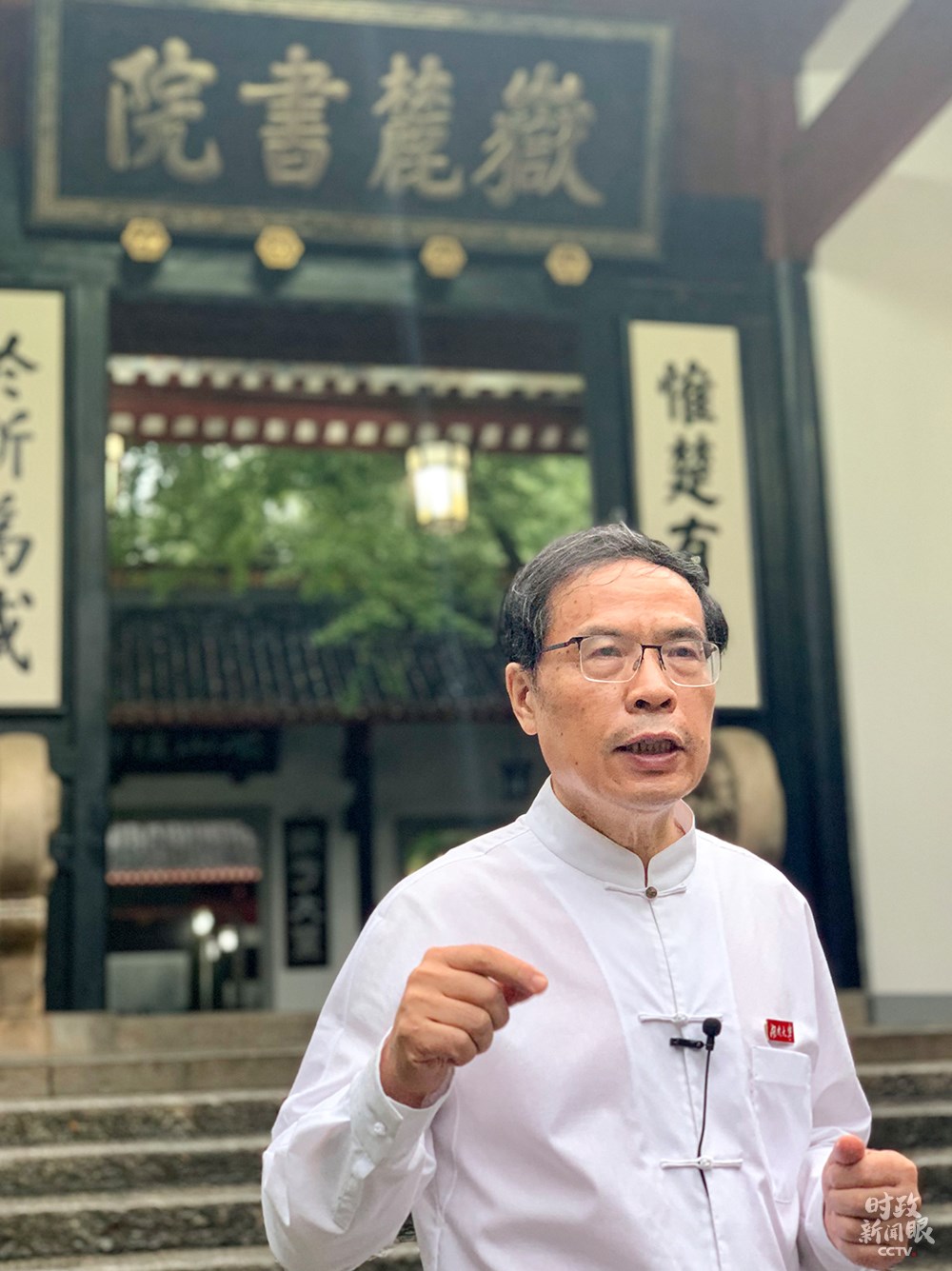 △當(dāng)天給總書記作介紹的是曾任岳麓書院院長20多年的朱漢民教授。(總臺(tái)央視記者盧心雨拍攝)