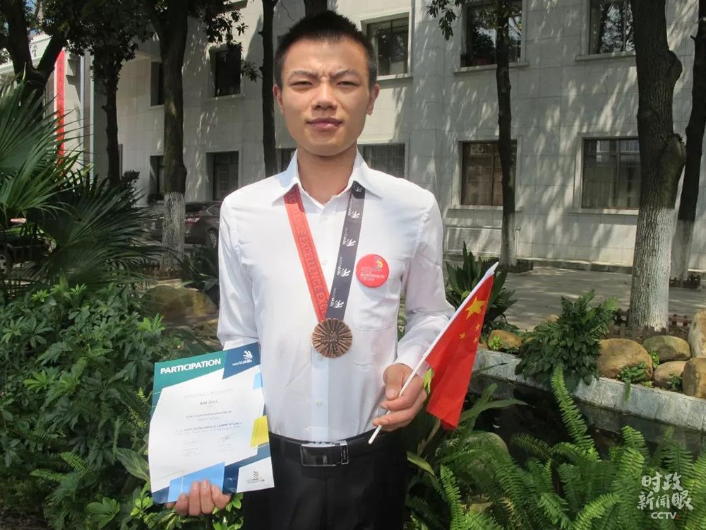 △鄒彬在第43屆世界技能大賽砌筑項(xiàng)目獲得優(yōu)勝獎(jiǎng)。