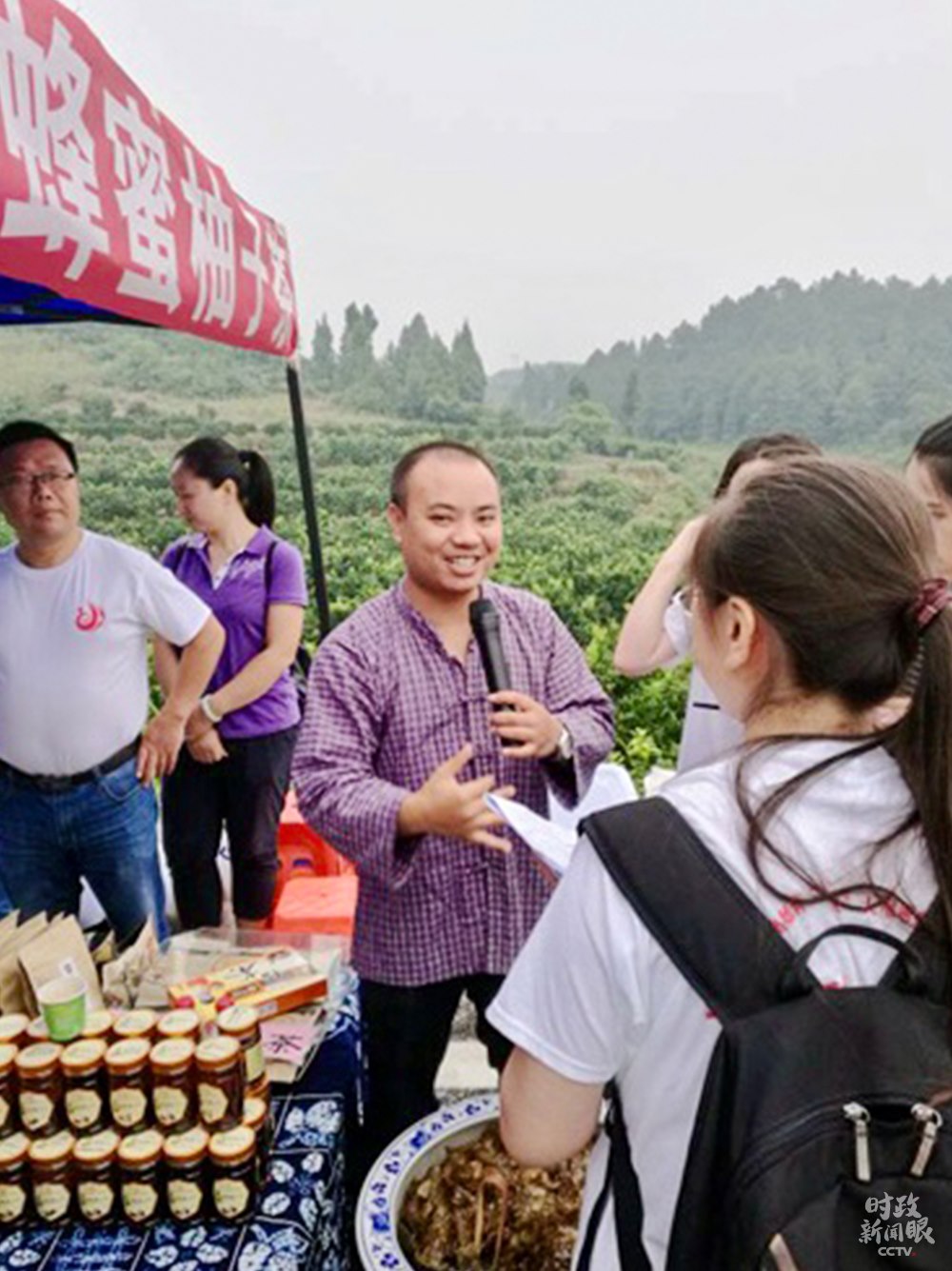 △周祖輝今年4月被評(píng)為“2020年全國向上向善好青年”。這是他向游客推介家鄉(xiāng)特產(chǎn)。