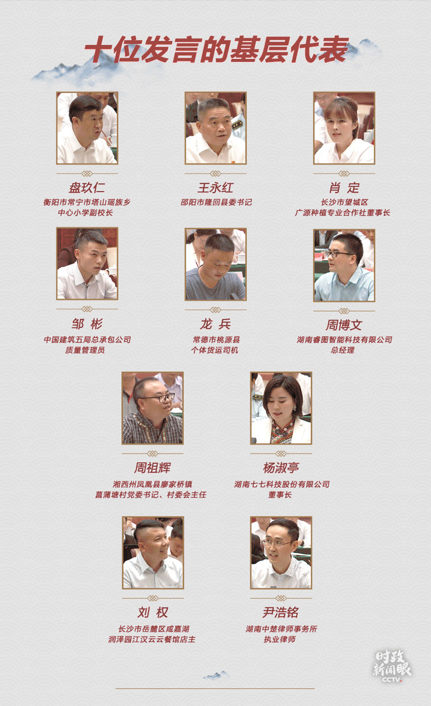 座談會(huì)上,有10位基層干部群眾代表作了發(fā)言。他們來自湖南省內(nèi)的多個(gè)領(lǐng)域。