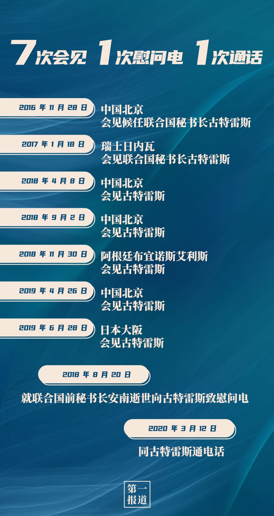 其中,習(xí)主席同聯(lián)合國(guó)“掌門(mén)人”的交往互動(dòng)最為頻繁,截至目前,習(xí)主席已7次會(huì)見(jiàn)聯(lián)合國(guó)秘書(shū)長(zhǎng)古特雷斯。今年,在全球暴發(fā)新冠疫情的特殊情況下,習(xí)主席還通過(guò)“電話外交”同古特雷斯保持溝通交流: