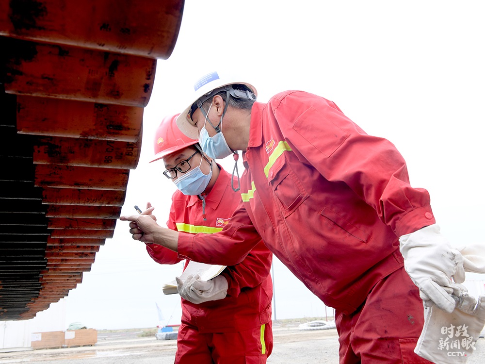 △中國(guó)石油大學(xué)(北京)克拉瑪依校區(qū)2020屆畢業(yè)生王首都(左)在克拉瑪依鉆井一線(xiàn)工作。