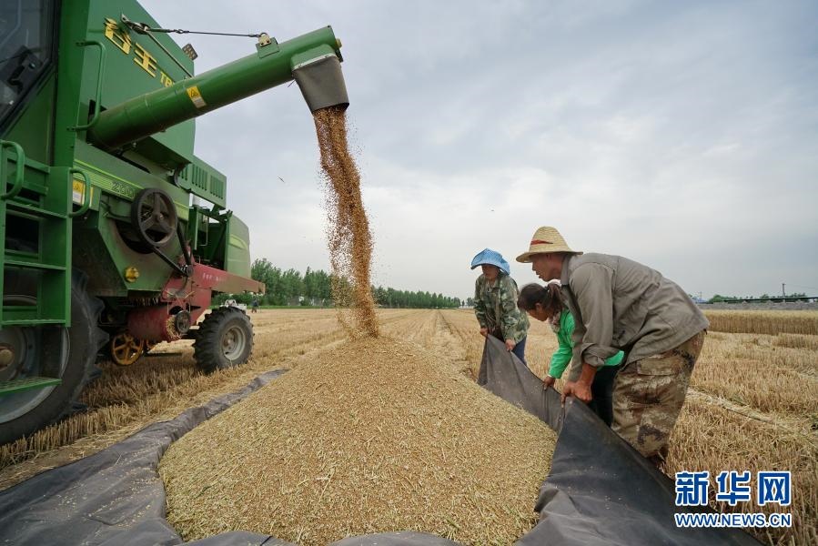 河北省灤州市灤城街道鄒家洼村村民在收獲小麥(2020年6月18日攝)。新華社記者 牟宇 攝