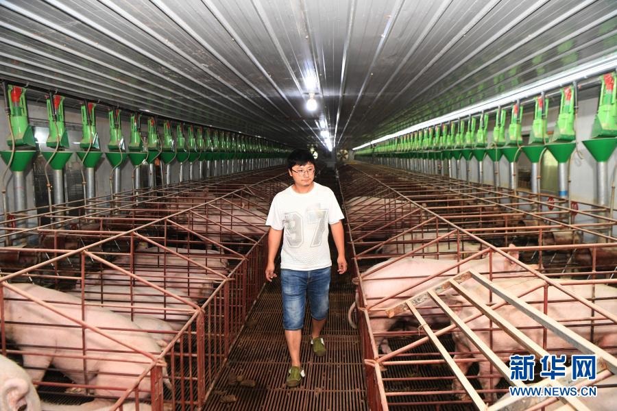 在重慶市萬州區(qū)高梁鎮(zhèn)天鵝村生豬生態(tài)養(yǎng)殖基地,工作人員在查看生豬生長情況(2020年6月5日攝)。新華社記者 王全超 攝