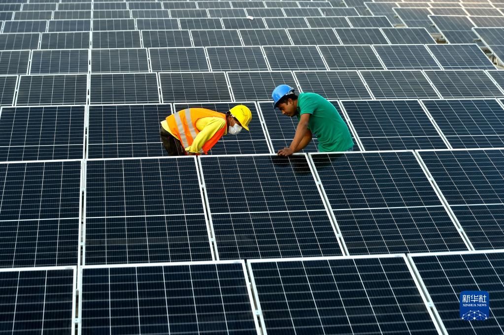 2021年1月3日,在位于孟加拉國(guó)首都達(dá)卡郊區(qū)的利德成集團(tuán)廠區(qū),工人們?cè)诜宽斀M裝光伏模組。從2020年開(kāi)始,中資制衣類(lèi)企業(yè)——利德成集團(tuán)在其位于孟加拉國(guó)達(dá)卡的廠區(qū)內(nèi)建設(shè)光伏電站,以降低對(duì)傳統(tǒng)能源的依賴,減少碳排放,從綠色發(fā)展的角度助力“一帶一路”建設(shè)。新華社發(fā)