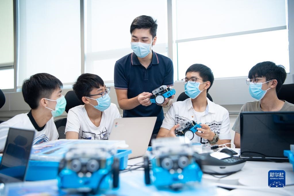 2020年7月14日,創(chuàng)業(yè)者吳以航在澳門青年創(chuàng)業(yè)孵化中心為學(xué)生上培訓(xùn)課。“80后”吳以航是澳門青年創(chuàng)業(yè)孵化中心會(huì)員,2019年,他進(jìn)駐廣州市天河區(qū)港澳青年之家,成立藍(lán)點(diǎn)教育技術(shù)(廣州)有限公司。新華社記者張金加攝