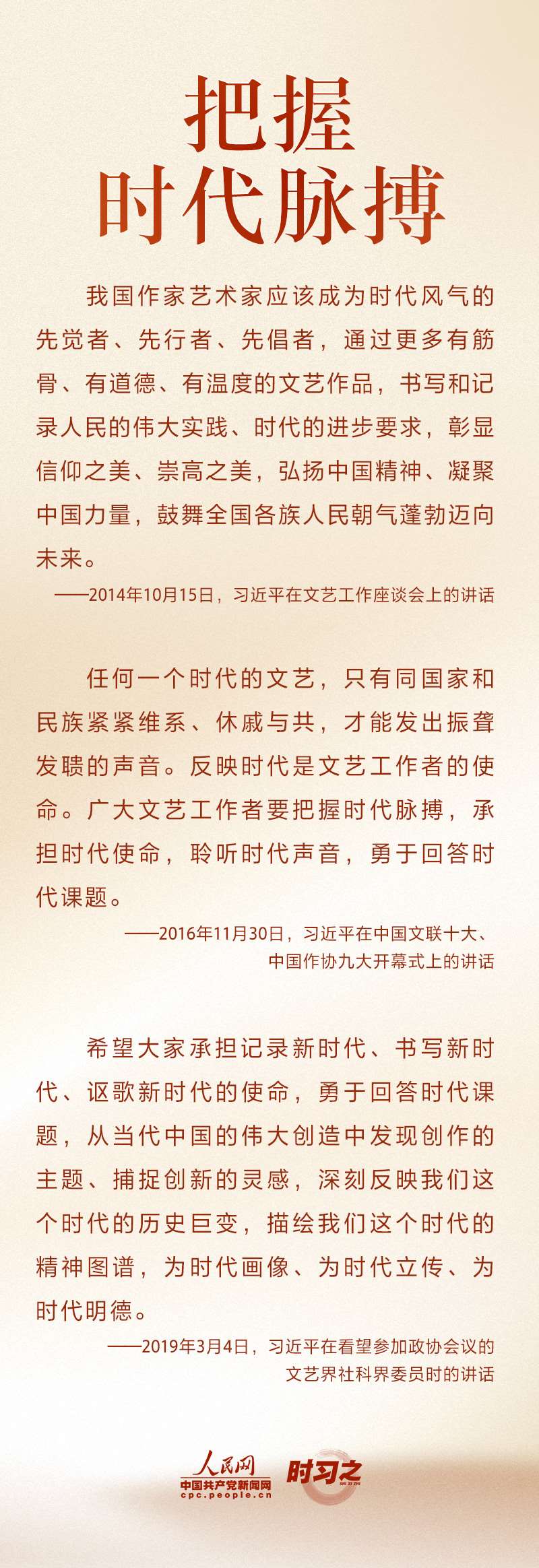 文運(yùn)同國運(yùn)相牽,文脈同國脈相連。新時代文藝工作者承擔(dān)著記錄新時代、書寫新時代、謳歌新時代的重大使命。“文藝是鑄造靈魂的工程,文藝工作者是靈魂的工程師?!秉h的十八大以來,習(xí)近平不斷激勵文藝工作者不辜負(fù)時代召喚、不辜負(fù)人民期待,以德服人、以文化人。