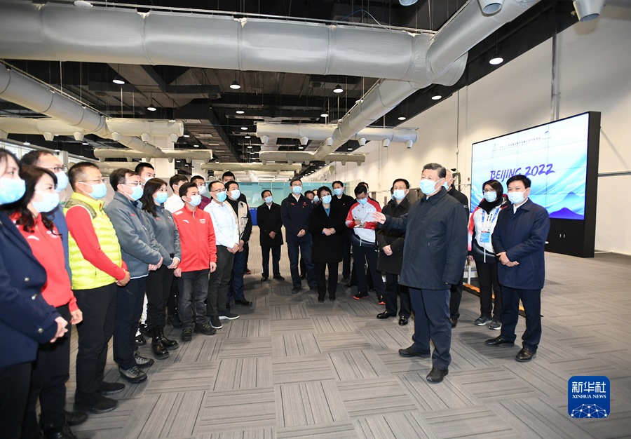 1月4日,中共中央總書記、國家主席、中央軍委主席習近平在北京考察2022年冬奧會、冬殘奧會籌辦備賽工作。這是4日下午,習近平在北京冬奧運行指揮部調(diào)度中心考察。新華社記者 謝環(huán)馳 攝