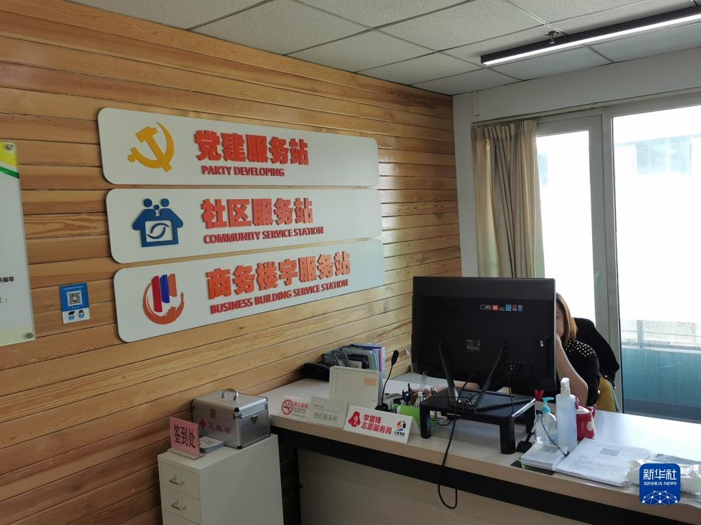 這是2021年5月8日拍攝的北京市朝陽區(qū)八里莊街道華貿(mào)中心社區(qū)“多站合一”后的社區(qū)辦公區(qū)域。新華社記者邰思聰攝