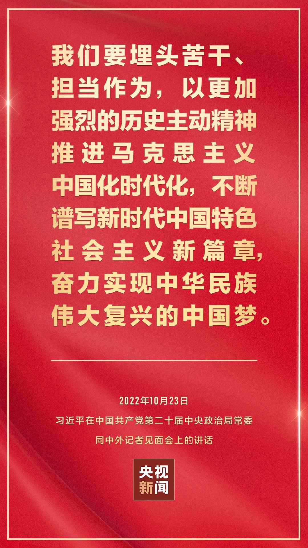 在中國(guó)共產(chǎn)黨第二十屆中央委員會(huì)第一次全體會(huì)議上當(dāng)選的中共中央總書記習(xí)近平和中共中央政治局常委李強(qiáng)、趙樂際、王滬寧、蔡奇、丁薛祥、李希,23日中午在人民大會(huì)堂同采訪中共二十大的中外記者見面。習(xí)近平發(fā)表重要講話。