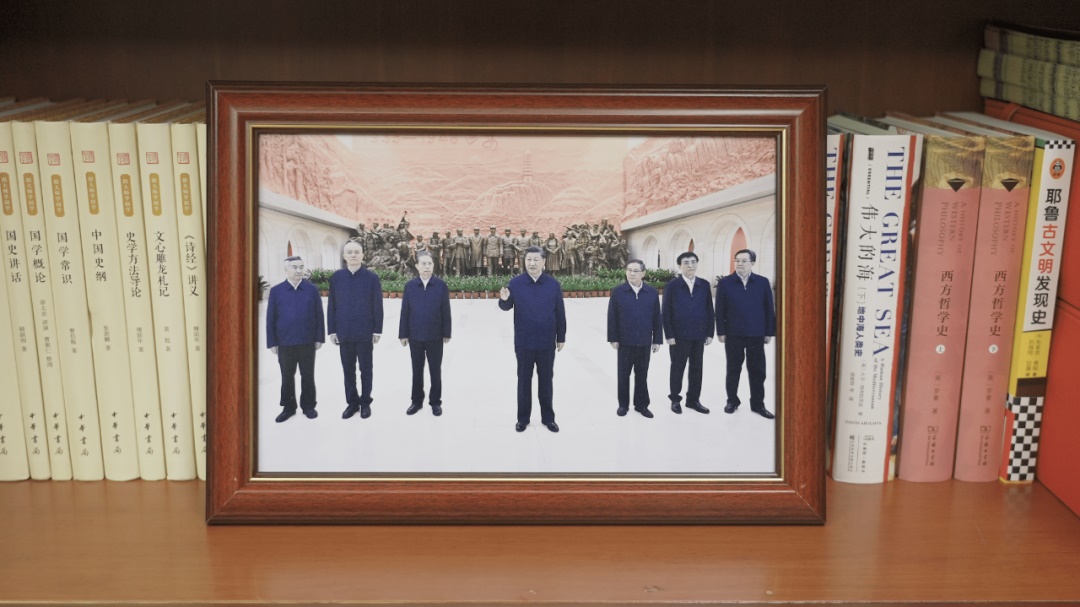 書架上,還增加了兩張習(xí)近平總書記年輕時(shí)的照片。