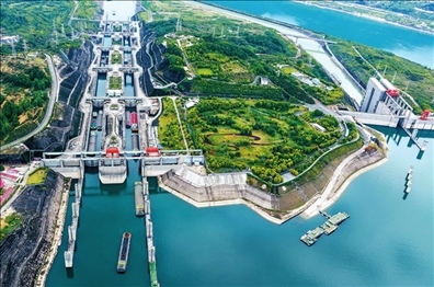 船舶有序通過三峽雙線五級船閘(2023年4月24日攝) 鄭家裕攝/本刊