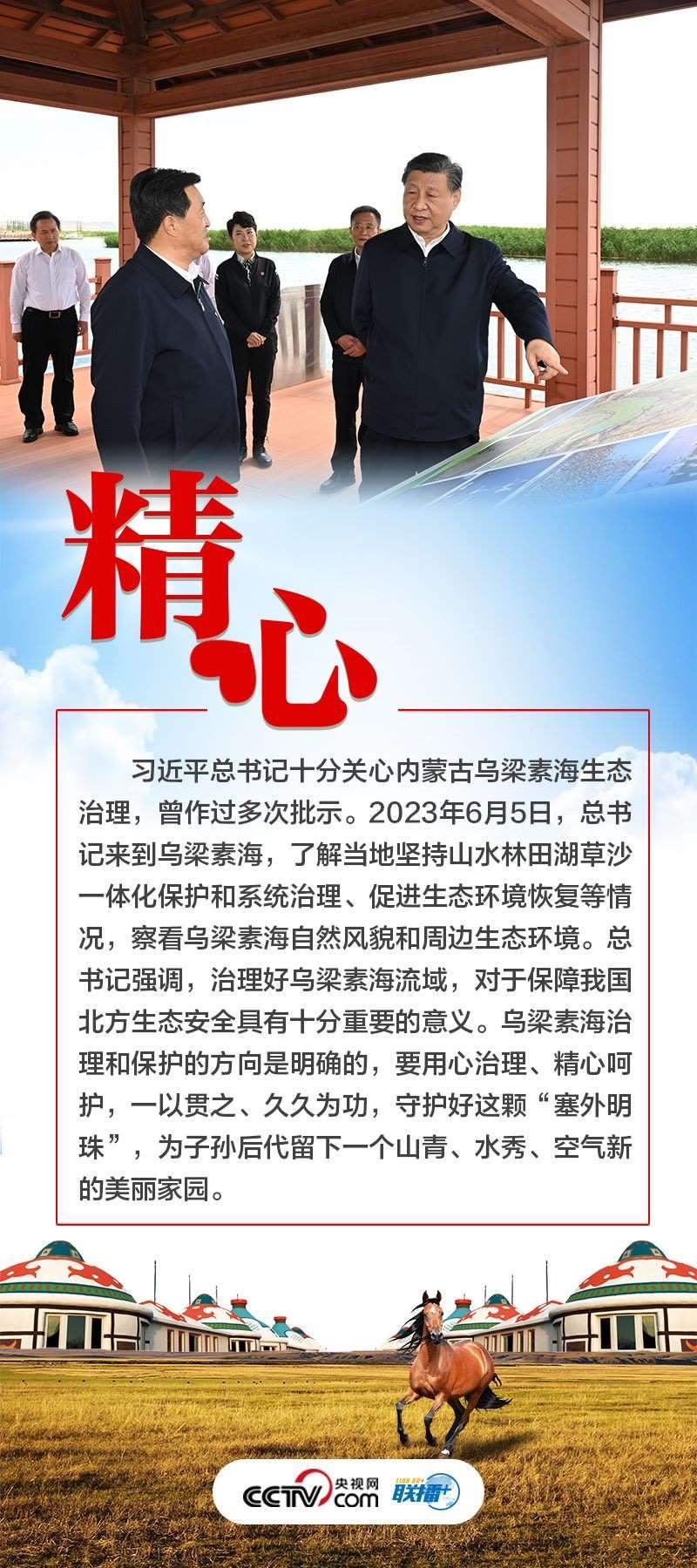 6月5日至6日,習近平總書記深入內(nèi)蒙古巴彥淖爾市的自然保護區(qū)、現(xiàn)代農(nóng)業(yè)示范園區(qū)、林場、水利部門等調(diào)研。黨的十八大以來,三次到內(nèi)蒙古考察、五次參加內(nèi)蒙古代表團審議,傳遞著習近平總書記對這片熱土的牽掛與惦念。央視網(wǎng)《聯(lián)播+》梳理總書記與內(nèi)蒙古的故事,與您一起體會這些故事背后的“心”意。