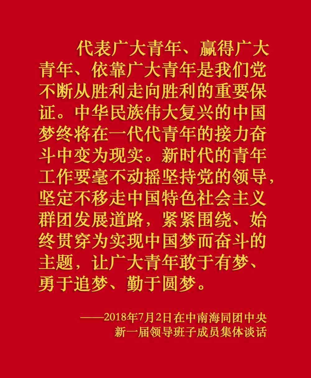 在新的征程上,如何更好把青年團結起來、組織起來、動員起來,為實現第二個百年奮斗目標、實現中華民族偉大復興的中國夢而奮斗,是新時代中國青年運動和青年工作必須回答的重大課題。