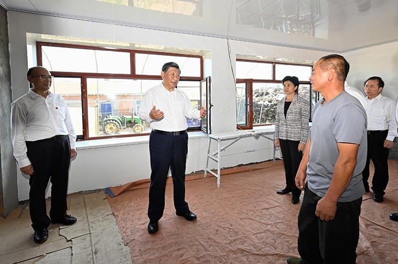 △9月7日,習(xí)近平總書(shū)記在黑龍江尚志市老街基鄉(xiāng)龍王廟村看望慰問(wèn)受災(zāi)群眾。