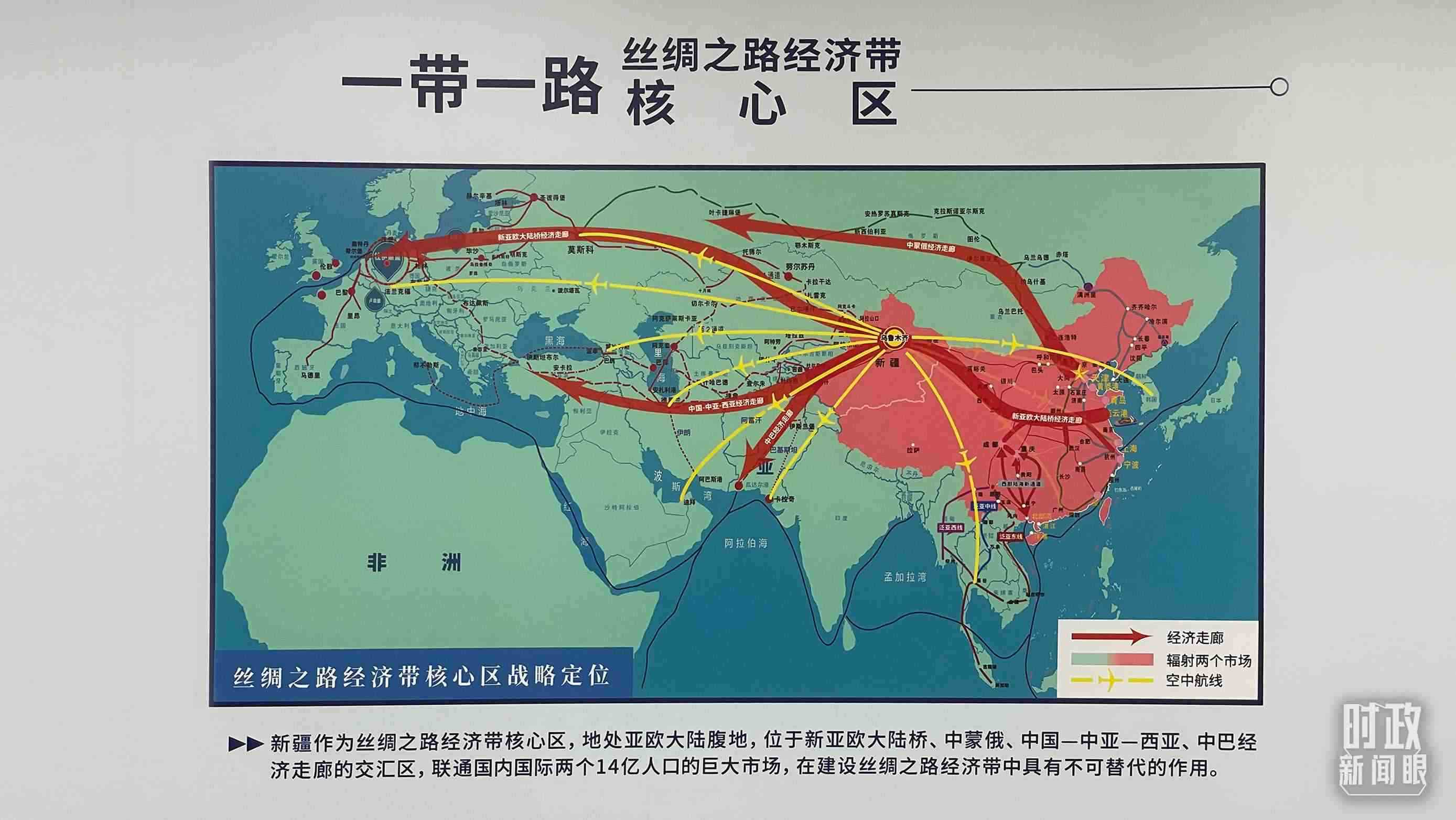 △新疆在絲綢之路經(jīng)濟(jì)帶建設(shè)中的區(qū)位優(yōu)勢。(總臺(tái)央視記者彭漢明拍攝)