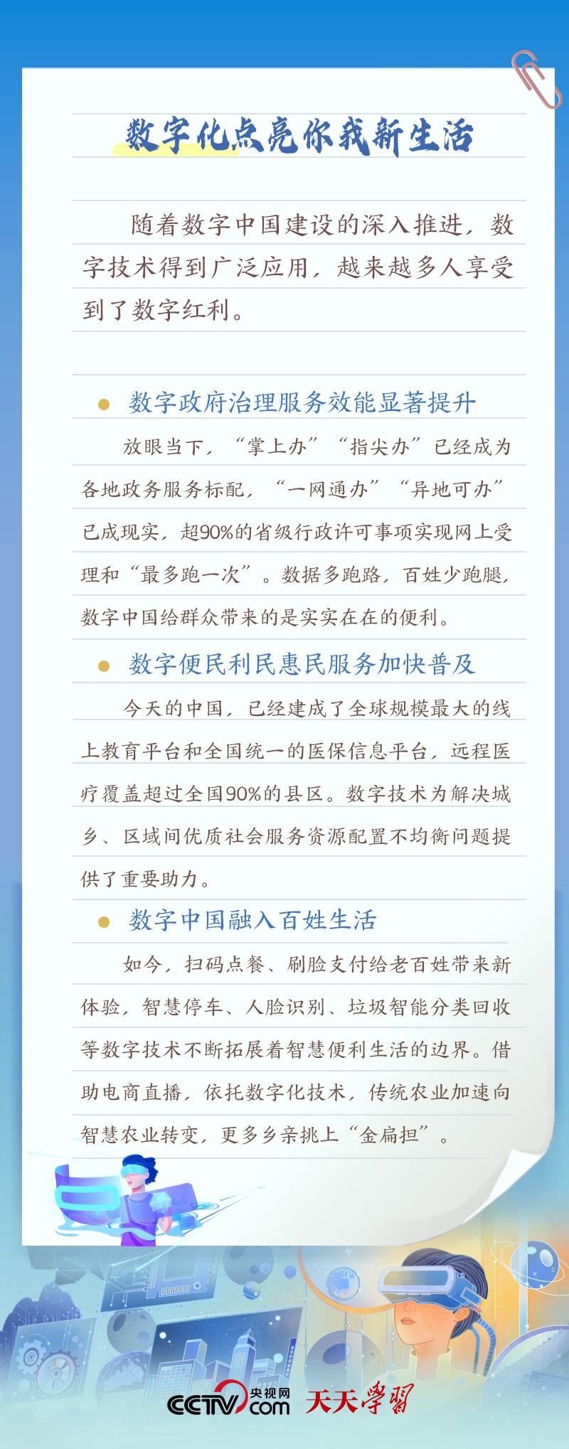 當(dāng)今世界,信息技術(shù)創(chuàng)新日新月異,數(shù)字化、網(wǎng)絡(luò)化、智能化深入發(fā)展。黨的十八大以來,習(xí)近平總書記曾多次明確強(qiáng)調(diào)推進(jìn)“數(shù)字中國”建設(shè)。什么是“數(shù)字中國”?怎樣建設(shè)“數(shù)字中國”?央視網(wǎng)《天天學(xué)習(xí)》特整理學(xué)習(xí)筆記,與您一起學(xué)習(xí)。