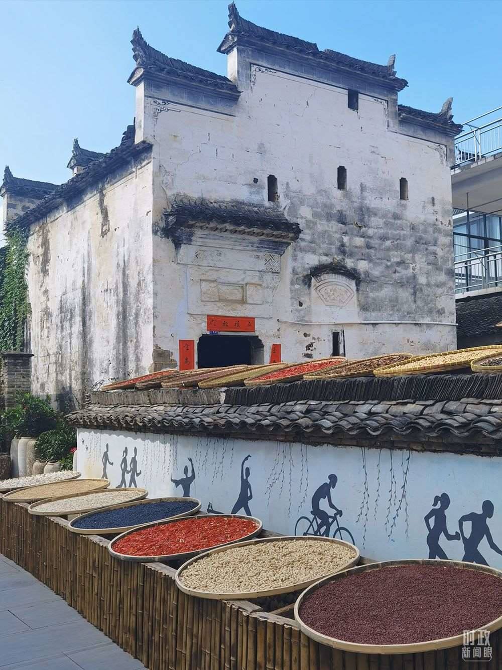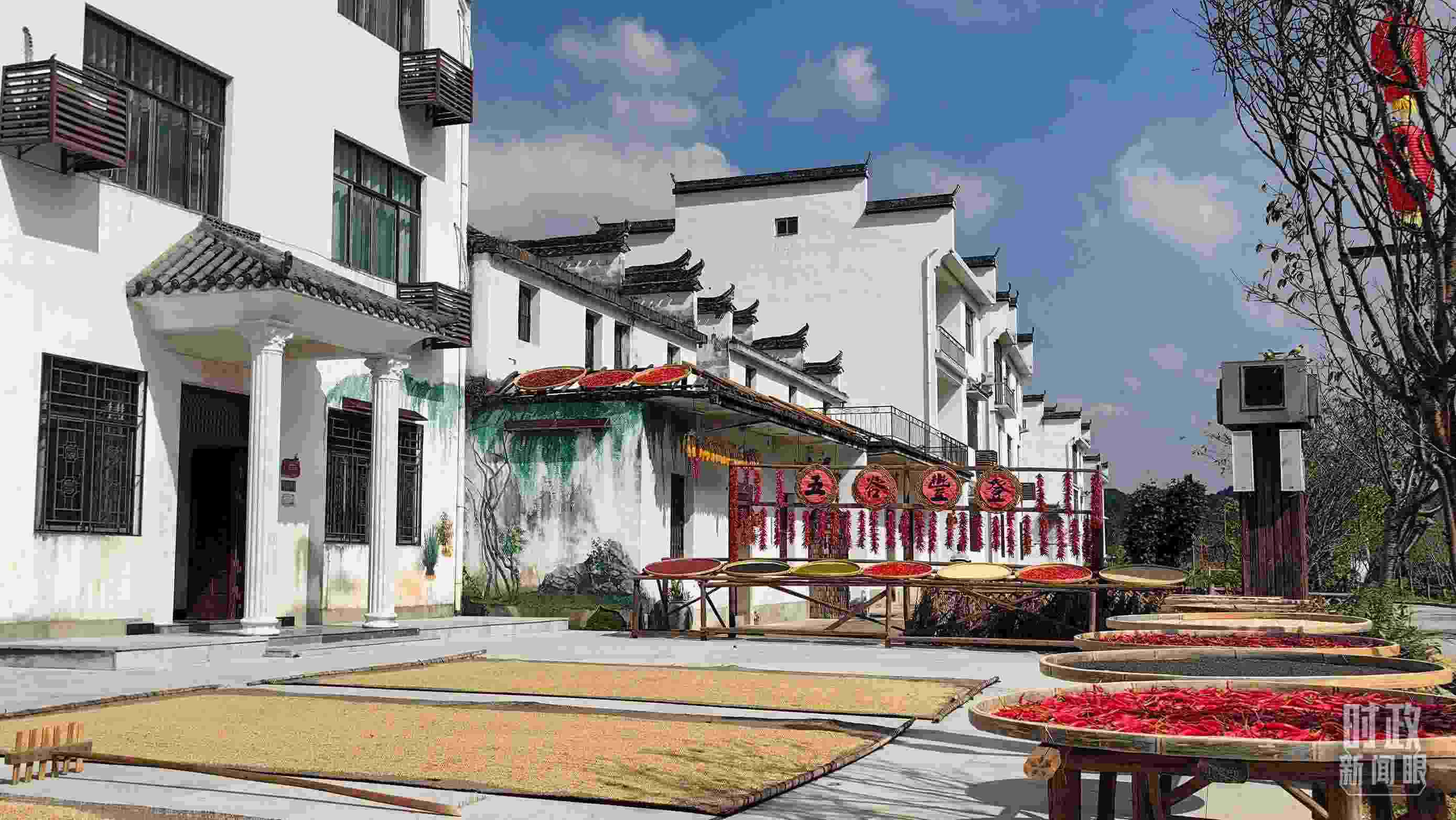△婺源鄉(xiāng)村的曬秋農(nóng)俗。(總臺央視記者鐘銳拍攝)