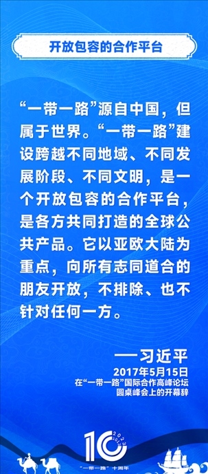 10年前,習(xí)近平主席提出共建“絲綢之路經(jīng)濟(jì)帶”和“21世紀(jì)海上絲綢之路”,即共建“一帶一路”倡議。過去10年來,習(xí)近平主席在多個場合發(fā)表講話和署名文章,為世界描繪了共建“一帶一路”互聯(lián)互通、合作共贏的宏偉藍(lán)圖。