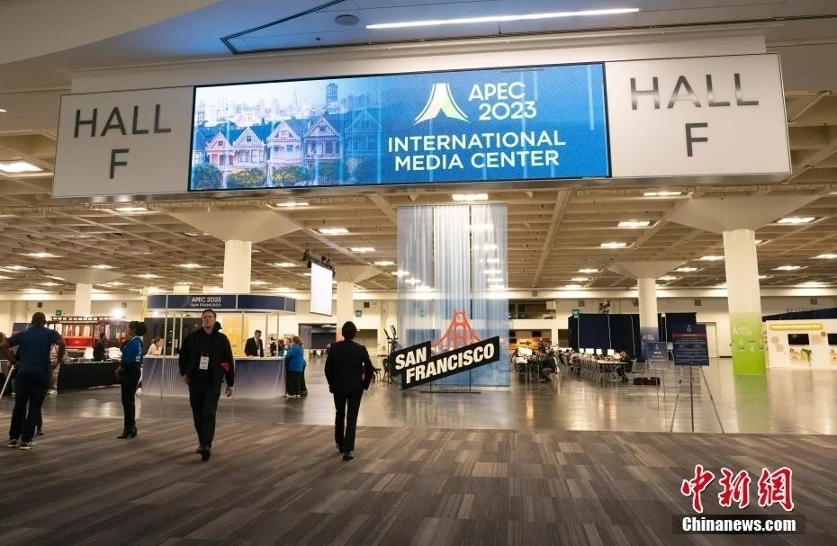 當地時間11月12日,各國記者在美國加州舊金山2023APEC會議國際媒體中心工作。中新社記者劉關關 攝