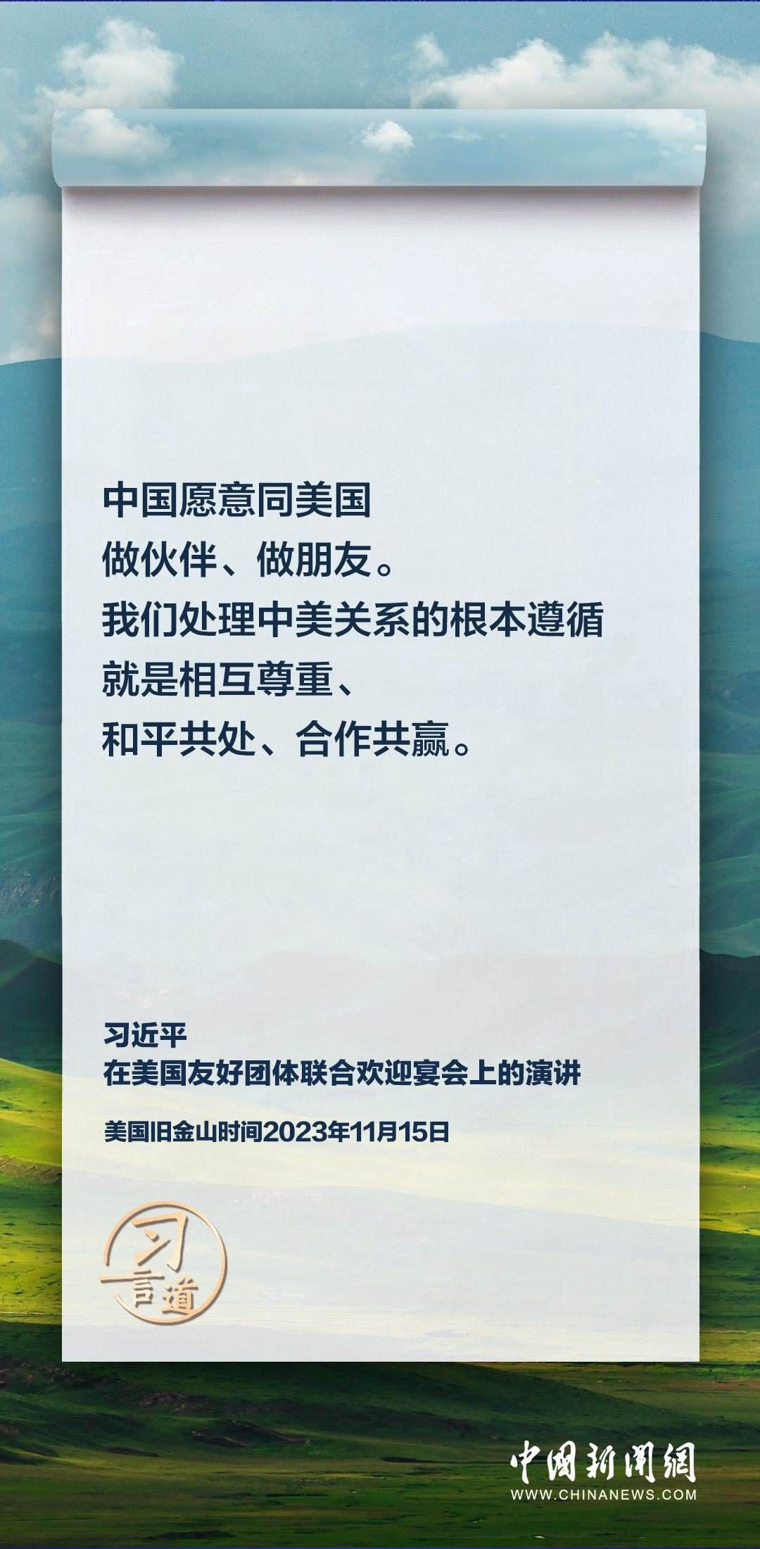 當?shù)貢r間11月15日,中國國家主席習(xí)近平在美國舊金山出席美國友好團體聯(lián)合歡迎宴會并發(fā)表演講。習(xí)近平在演講中從“我”和“我們”說起,提出中國主張、表明中國立場、展現(xiàn)大國擔當,話語擲地有聲。