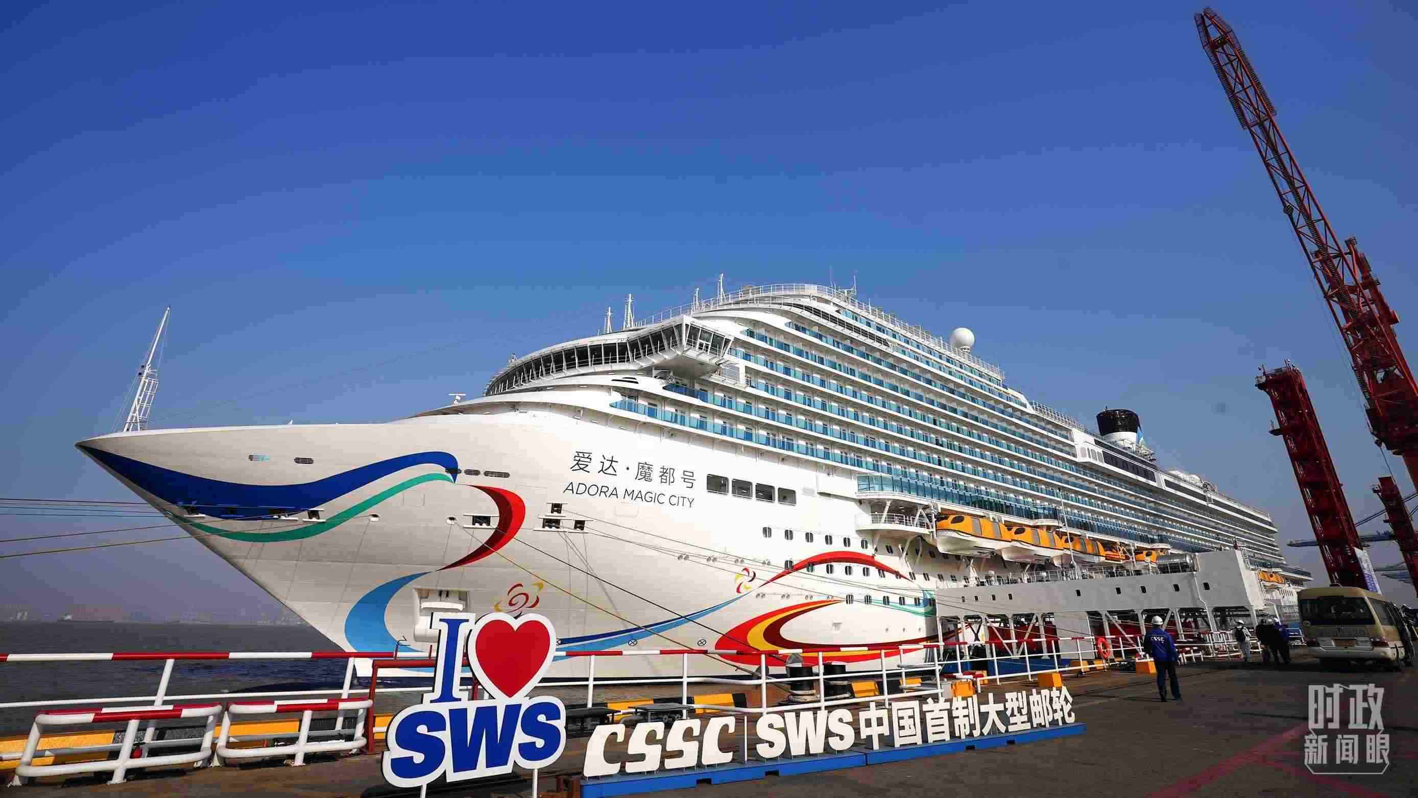 △中國(guó)首制大型游輪——愛達(dá)·魔都號(hào)。(總臺(tái)央視記者劉琦拍攝)