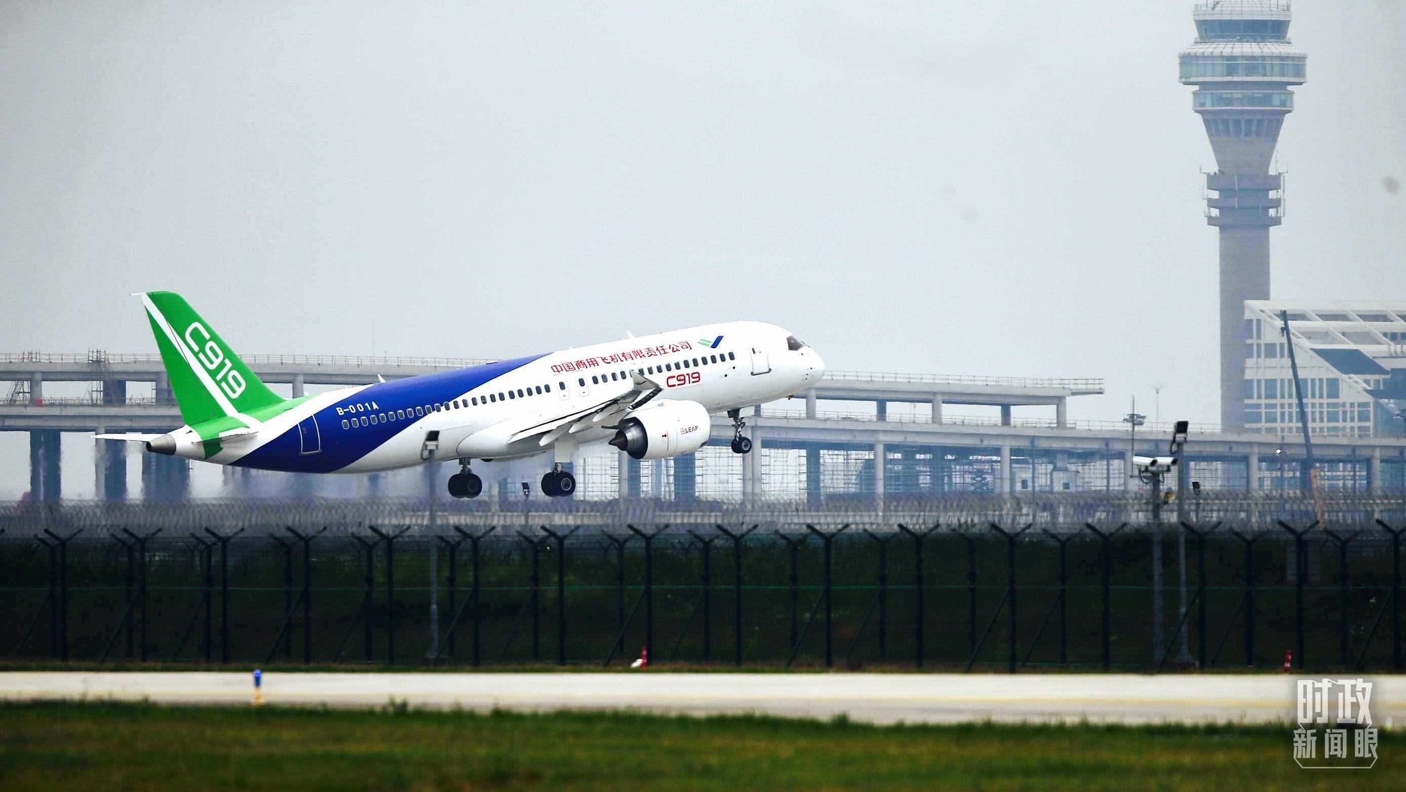 △2017年5月5日,國(guó)產(chǎn)大飛機(jī)C919成功首飛。(總臺(tái)國(guó)廣記者李晉拍攝)