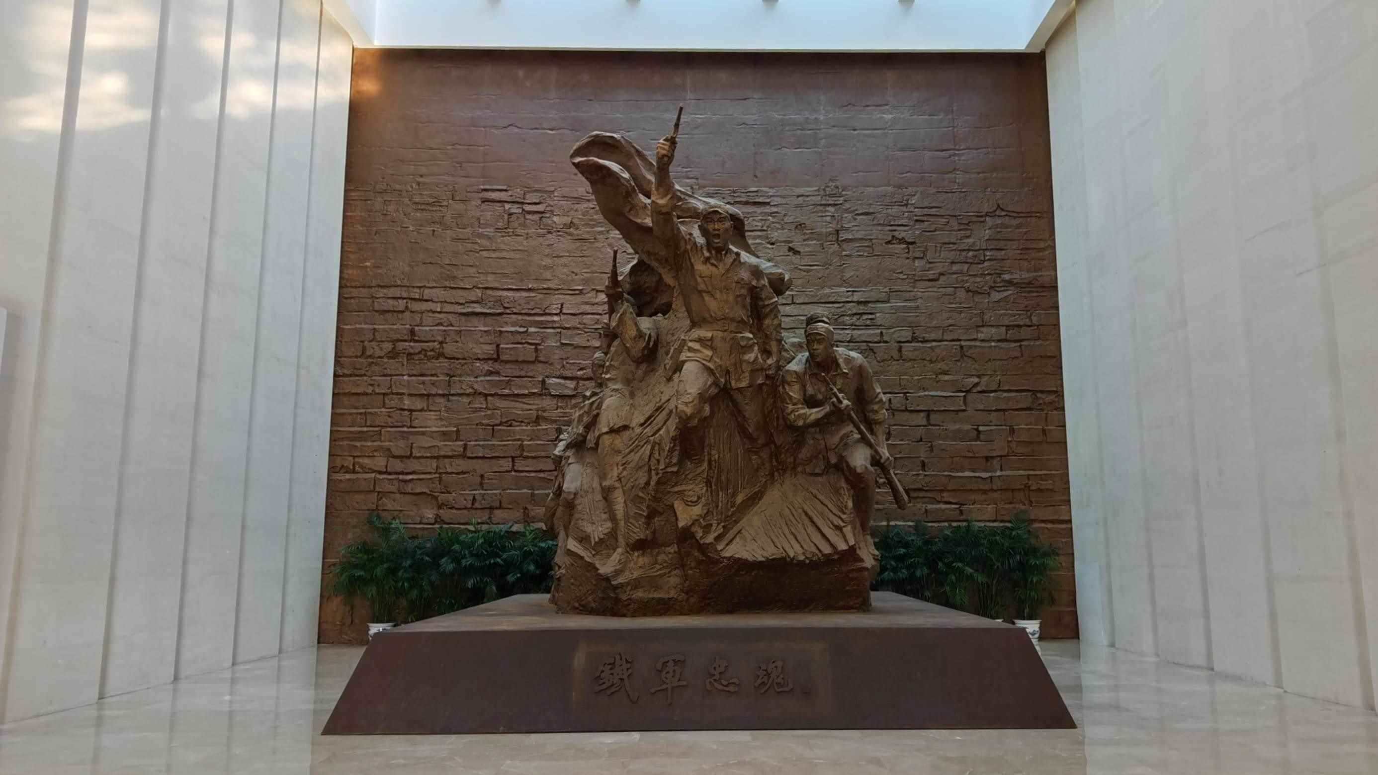 △新四軍紀念館里的雕塑“鐵軍忠魂”。(總臺央視記者郭鴻拍攝)