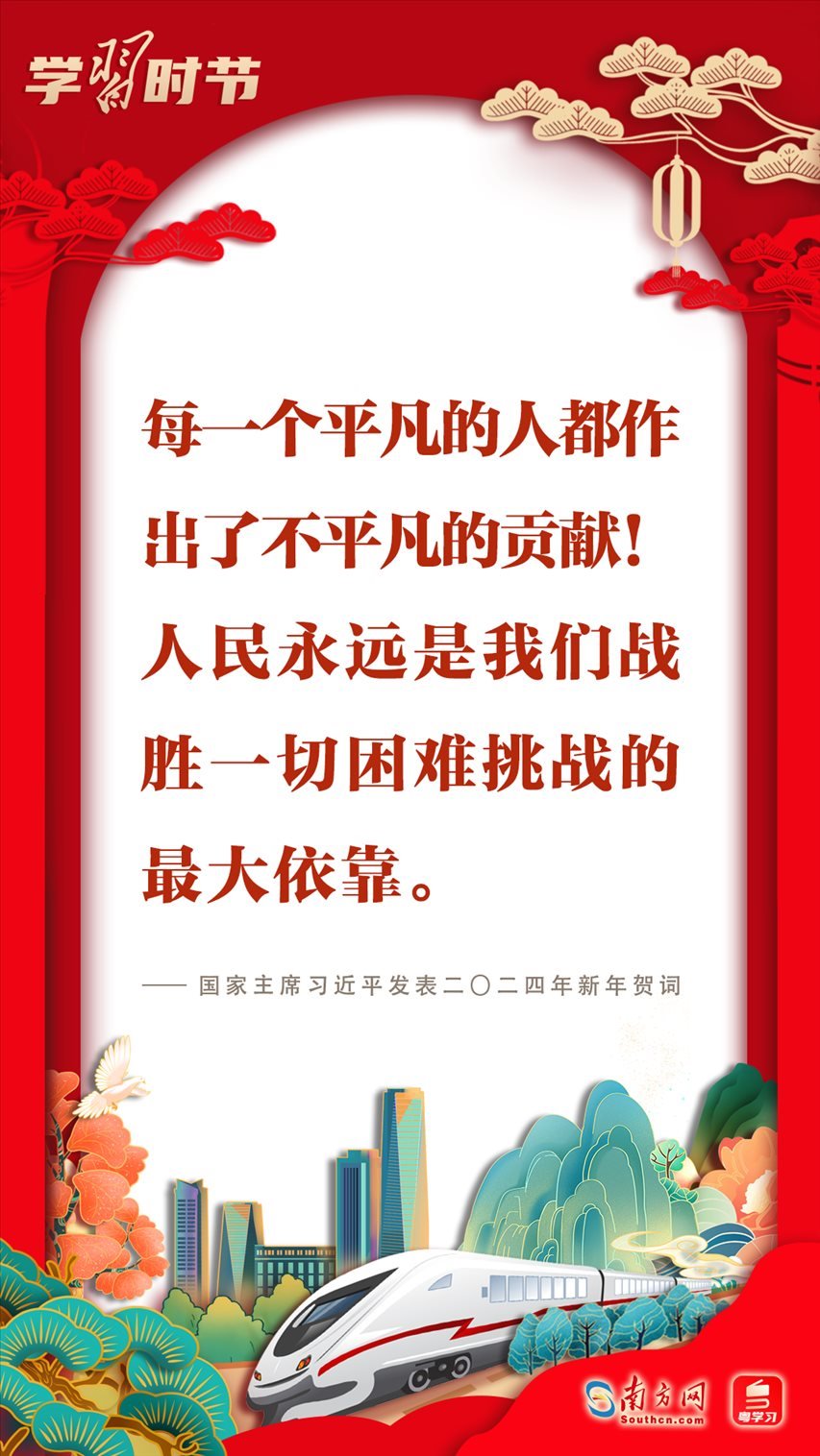 2023年12月31日晚,國(guó)家主席習(xí)近平在北京發(fā)表二〇二四年新年賀詞。賀詞飽含對(duì)廣大人民群眾的深情,彰顯對(duì)中國(guó)發(fā)展的堅(jiān)定信心。回首過(guò)往,展望未來(lái);砥礪前行,征程再起。讓我們一起在習(xí)近平主席的新年賀詞中感受直抵心靈的溫暖、催人奮進(jìn)的力量!