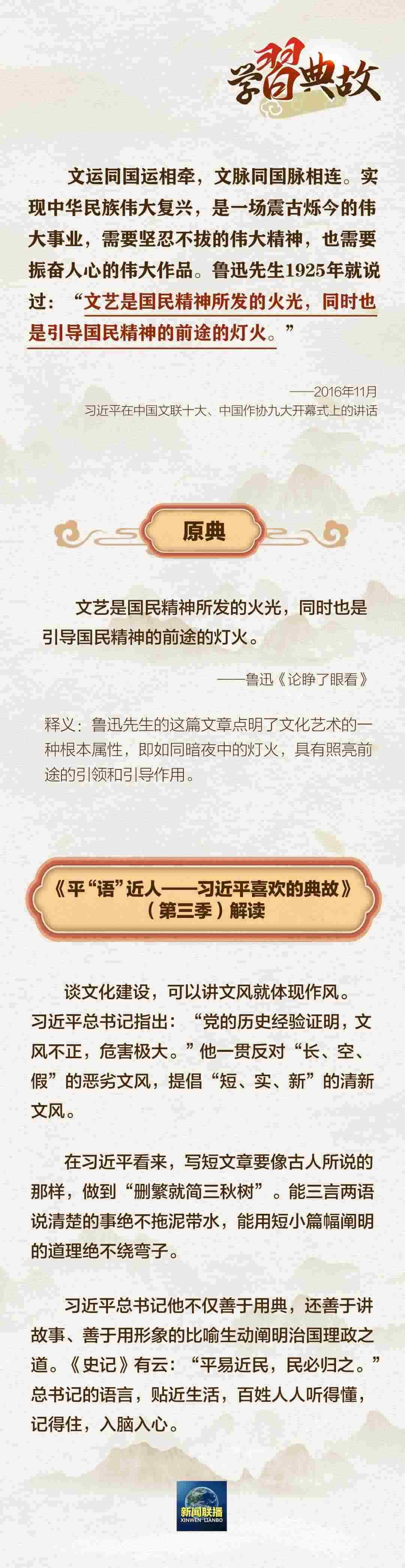 文運同國運相牽,文脈同國脈相連。文化自信是一個國家、一個民族發(fā)展中,最基本、最深沉、最持久的力量。黨的二十大報告中指出:“全面建設社會主義現代化國家,必須堅持中國特色社會主義文化發(fā)展道路。”圍繞“文化建設”這一主題,總書記曾講到哪些典故?一起學習↓↓↓