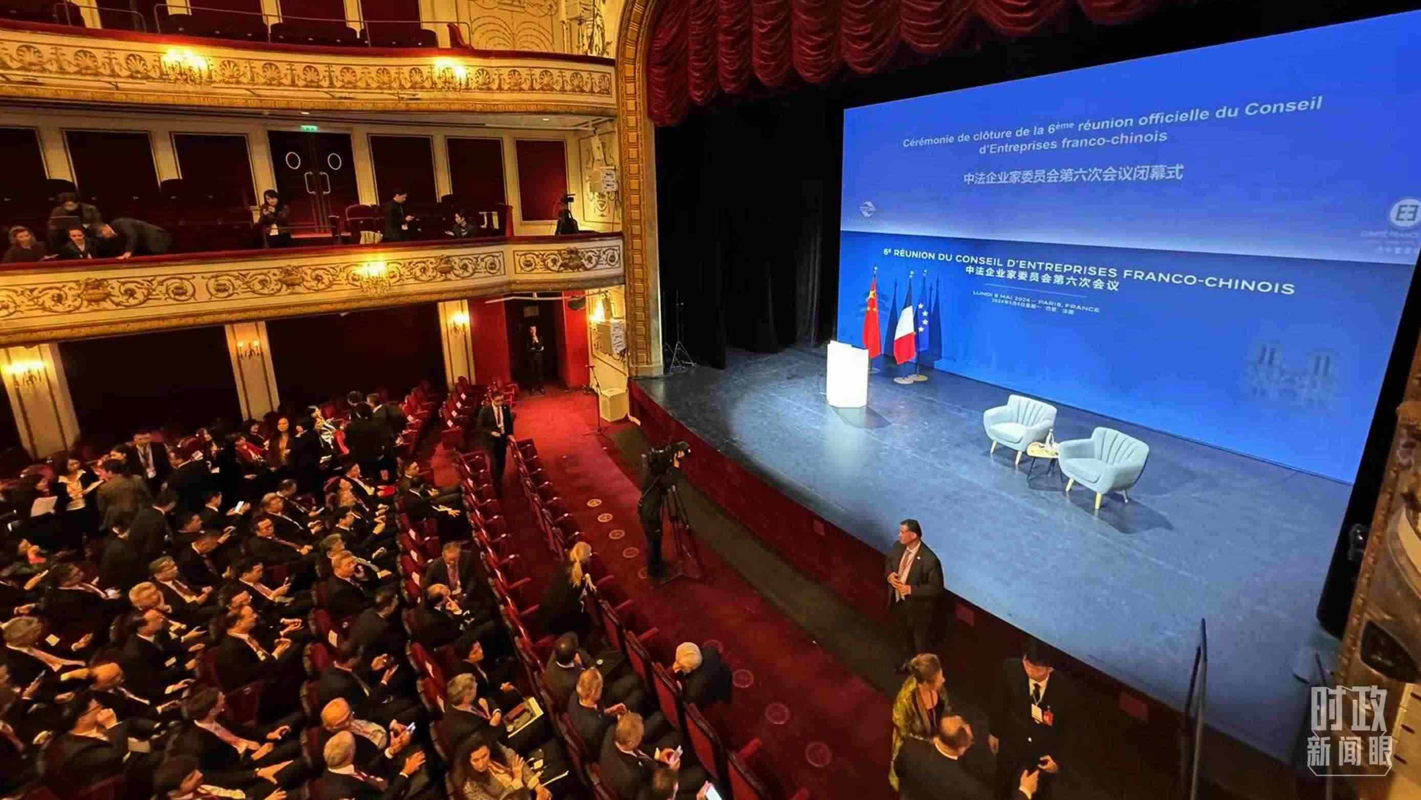 △中法企業(yè)家委員會第六次會議閉幕式開始前的現(xiàn)場。(總臺央視記者蔣碩拍攝)